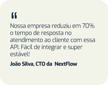 API muito intuitiva que te permite criar uma integração entre sua empresa e o Whatsapp de forma muito mais ágil.